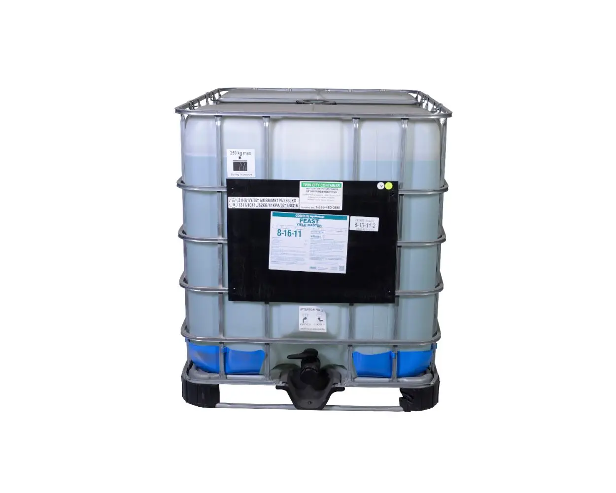 Conklinās Feast fertilizers start with the highest quality raw materials which produce a superior finished product that out performs the competition. For use a row applied starter fertilizer to get your crops off to a great start and then to follow up with strategically timed foliar applications to maximize your crops genetic potential. It has a low salt index providing 100% orthophosphate (food grade phosphoric acid), potash and sulfur that is safe for in-row, splitter and 2X2 starter fertilizer placement based upon your soils characteristics and your intended crop. Feast 8-16-11w2S is a special blend of our Feast 9-18-9 and Feast Side-Kick fertilizers conveniently pre-blended for yourā application.